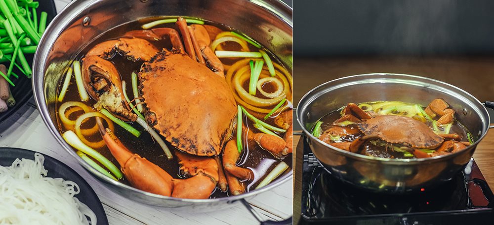 Trong thực đơn SOBO, không thể không nhắc đến món lẩu cua đậm vị, ngọt, thơm từ nước dùng, cả con cua to bự đến đồ nhúng kèm đa dạng.